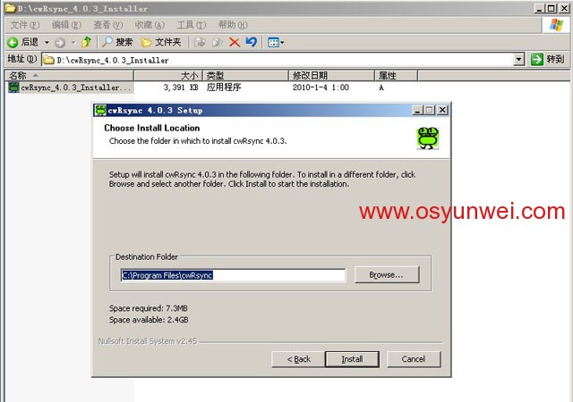 解压cwRsync_4.0.3_Installer.zip 双击打开cwRsync_4.0.3_Installer.exe