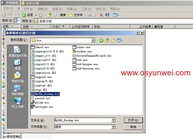 浏览,选择打开C:\Program Files\cwRsync\bin目录里面的MySQL_Backup.bat