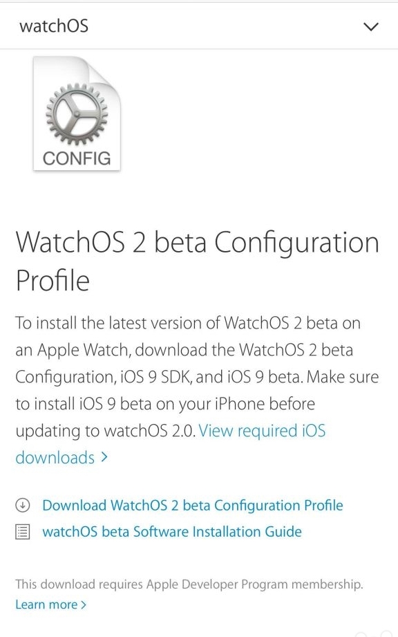 MobileConfig链接:使用手机打开(手机升完iOS9之后,使用手机安装一个mobileconfig文件,就可以升级Watch OS 2了)
