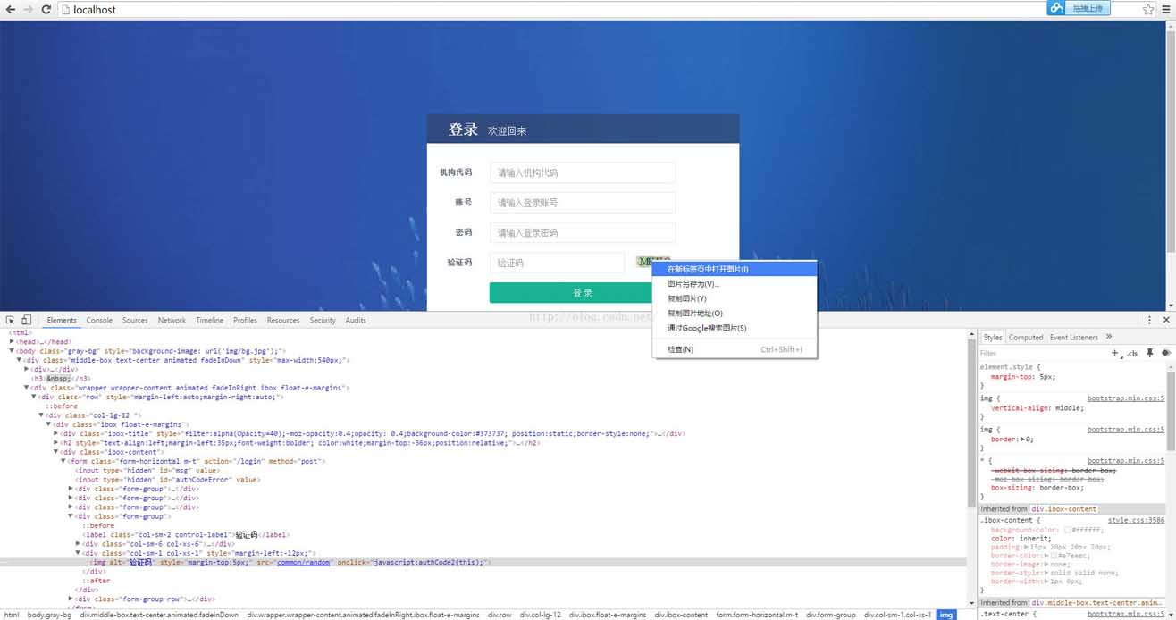 2.通过审核元素获取验证码的地址url2(其实最简单的是右键打开新页面)
