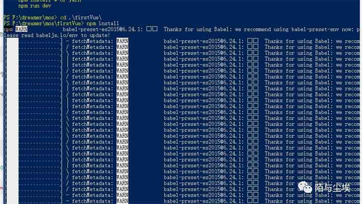 创建完成后进入该目录下,执行npm install ,下载所有依赖的东西,此过程根据网络环境,可能需要几分钟,可以喝杯茶上个厕所。如下图所示