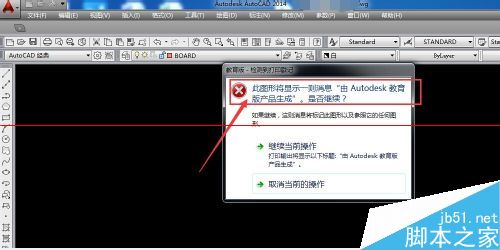 1、我们打开一份CAD文件,结果发现是教育版的,检测到有打印戳记,提示是继续操作还是取消,如果取消操作,这个文件就不能打开了。在此我们选择继续
