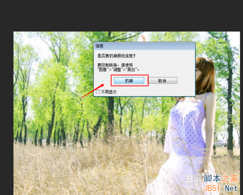 点击拼合之后,我们又会看到一个,是否人扔掉颜色信息,我们点击扔掉,这样我们就可以成功的完成这个灰度模式了;
