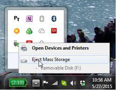 点击系统通知区域里的安全移除硬件图标,并点击设备名。当系统显示可安全移除硬件时,你就可以将存储设备拔下了。可如果显示的信息是设备目前正在使用,那你就需要执行如下步骤。