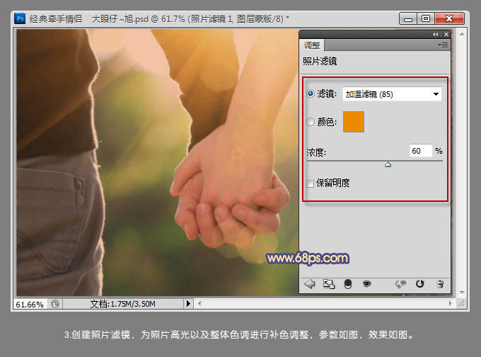 以上就是高贵咖啡豆最近收集整理的关于Photoshop将情侣牵手图片打造出温馨的蓝黄色效果的全部内容,更多相关Photoshop将情侣牵手图片打造出温馨内容请搜索靠谱客的其他文章。