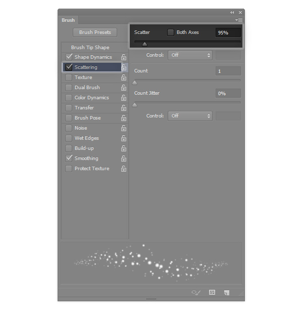 打开散布并选择一个合适的数值。不要太大或太小而导致不能控制笔划。