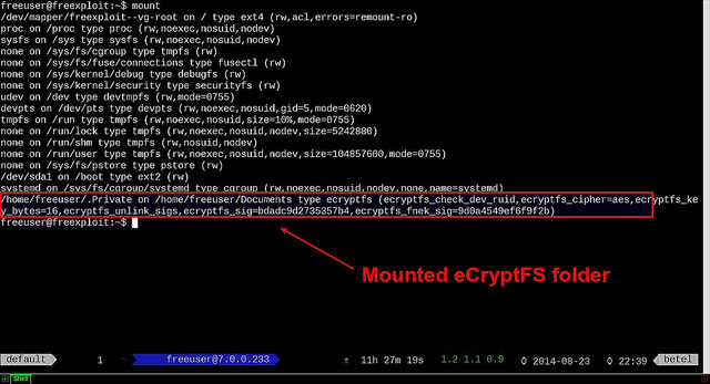 eCryptFS:一个POSIX兼容的加密文件系统,eCryptFS工作方式和EncFS相同,所以你必须挂载它。