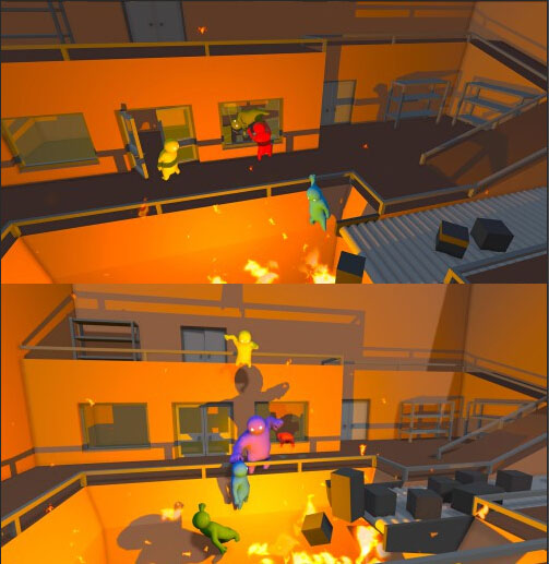 Boneloaf制作,U3D引擎开发的一款萌萌的小人大乱斗游戏,游戏中有红蓝绿黄4个小人可选,支持联机。