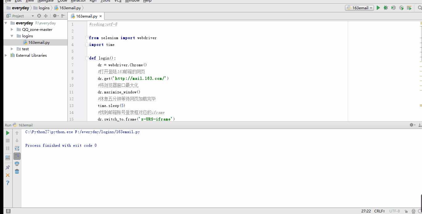 以上就是神勇硬币最近收集整理的关于python+selenium实现163邮箱自动登陆的方法的全部内容,更多相关python+selenium实现163邮箱自动登陆内容请搜索靠谱客的其他文章。