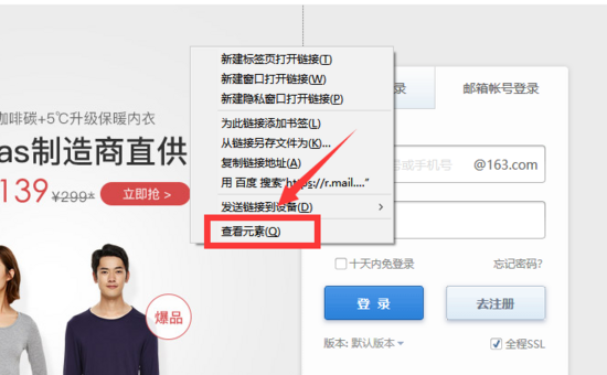 首先分析163邮箱登陆页面的网页结构(按F12或单击鼠标右键选择审查元素)