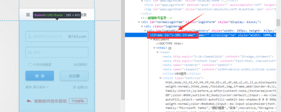 1、定位到登陆框(注意登录框是一个iframe,如果不定位到iframe的话是无法找到之后的邮箱地址框和密码输入框的)