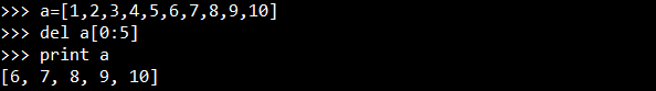 分片通过冒号相隔的两个索引来实现,第一个索引是需要提取部分的第一个元素的编号,第二个索引是需要提取的连续区间最后一个元素的下一个元素在列表中的编号。简而言之,就是左闭右开的思想。