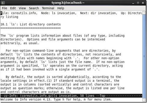 注:info查看的是比man更详细的说明,也就是把man的页再划分为更小的章节,同时这个命令还可以链接到相似主题