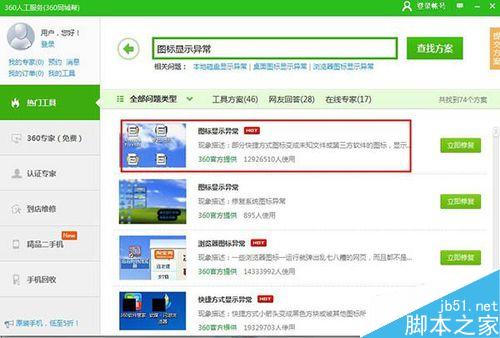 在弹出的360人工服务界面中,找到“电脑故障”——“图标显示异常”,如下图: