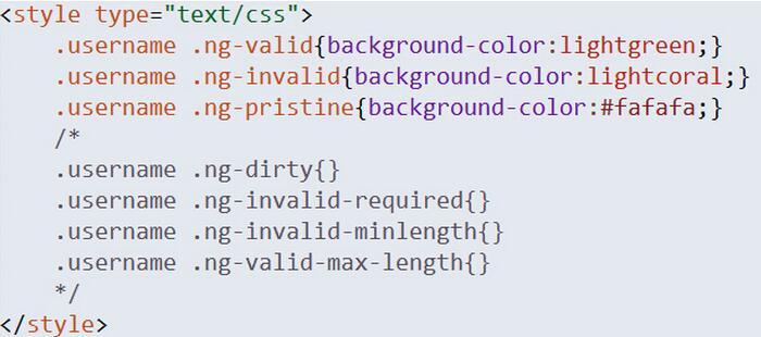 angular在做验证时,这些属性会及时的添加到元素上,方便定制这些类来实现特定的场景应用。