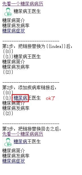 最初是用的 str.replace('糖尿病', '<a href=...>糖尿病</a>');