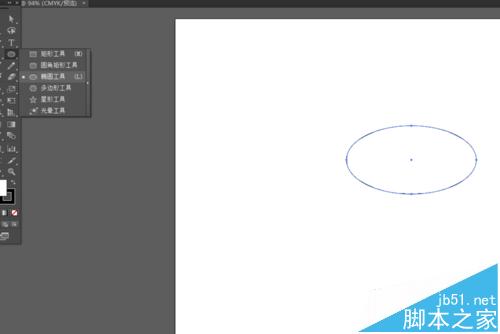1、在Ai软件中,新建一个800*800的文档,选择椭圆工具,画一个椭圆的图形,如图所示