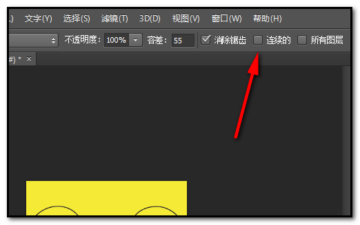 4、为什么这样呢,是因为我们没有把“连续的”这个选项勾选上。现在, 退一步,撤回到填充颜色前的状态,把“连续的”勾选上。