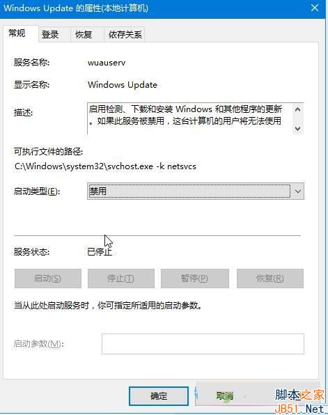 2、双击打开“Windows Update”服务,将其启动类型修改为“禁用”,然后点击“停止”,最后点击应用并确定;