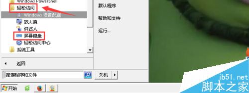 2、打开“轻松访问”——“屏幕键盘”。就可打开 软键盘输入界面。
