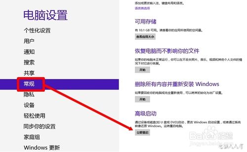 3、点选左边设置选项卡中的 常规 菜单,再点击右边的 立即启动 即会重启电脑。