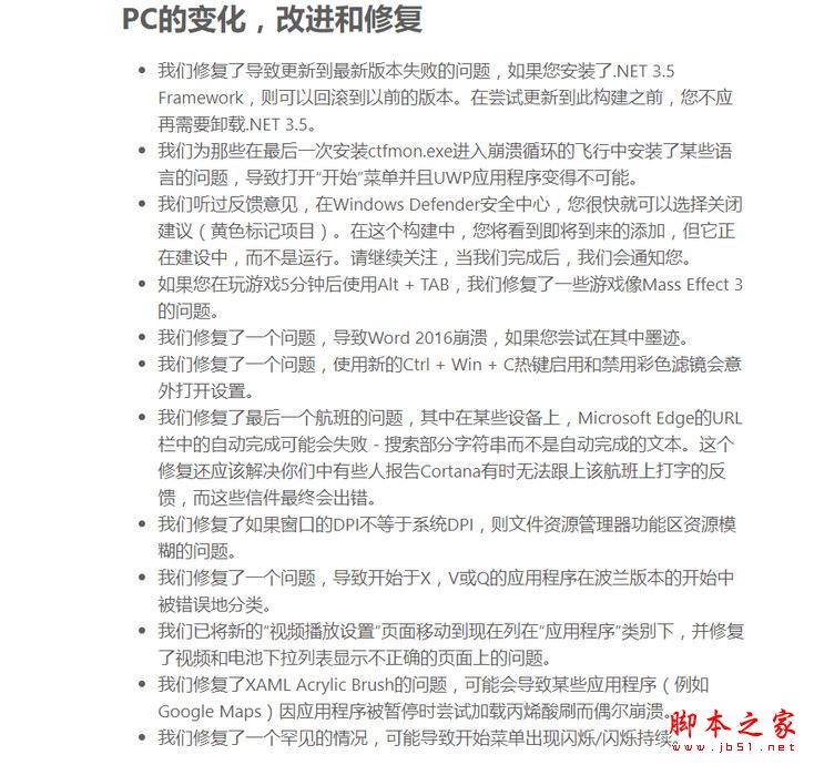 Win10秋季创意者更新16232快速预览版主要修复内容: