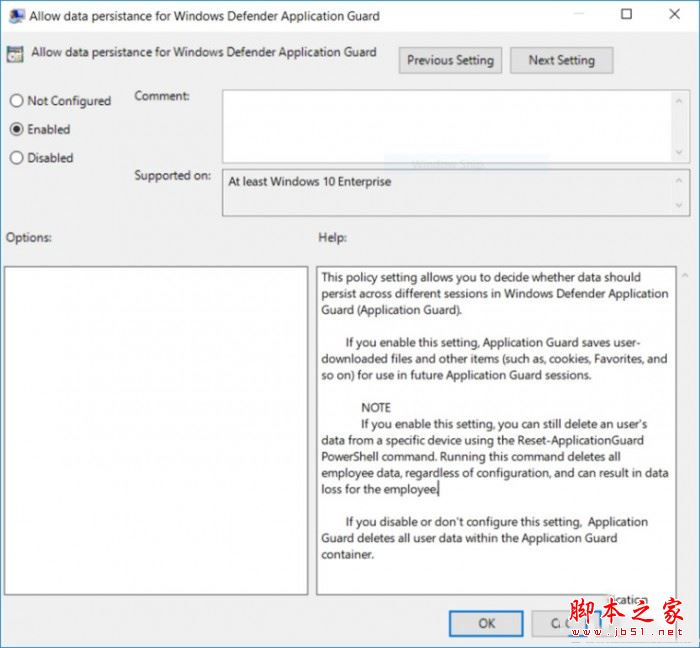 用户能够使用组策略在Edge浏览器的Application Guard功能中激活Data Persistence,该功能默认状态下不激活。激活之前需要关闭所有Edge窗口,并升级Windows Components > Windows Defender Application Guard来激活Data Persistence。