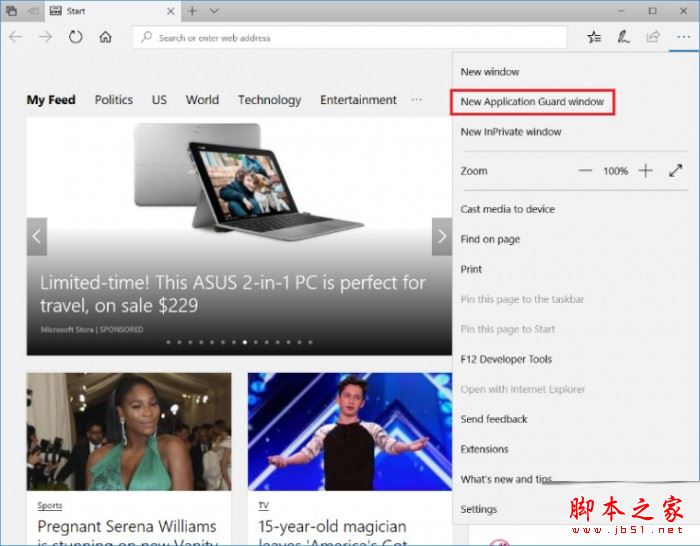 在组策略设置之后,在Edge浏览器中点击New Application Guard Window。