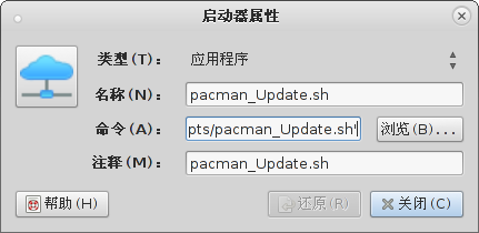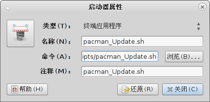 问题提出按照旧思路,在面板中添加启动器指向 .sh 脚本,以这个为例: