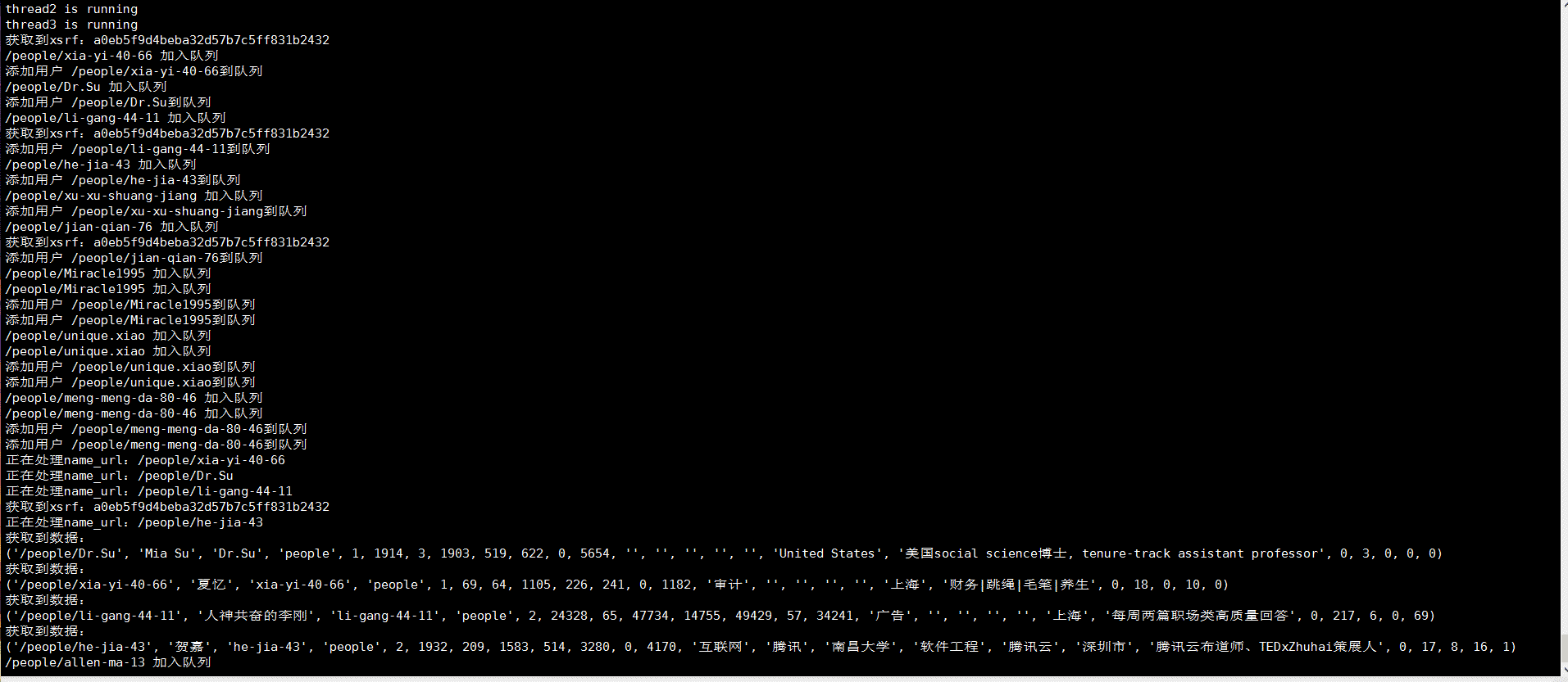 以上就是清秀黑夜最近收集整理的关于python实现多线程抓取知乎用户的全部内容,更多相关python实现多线程抓取知乎用户内容请搜索靠谱客的其他文章。