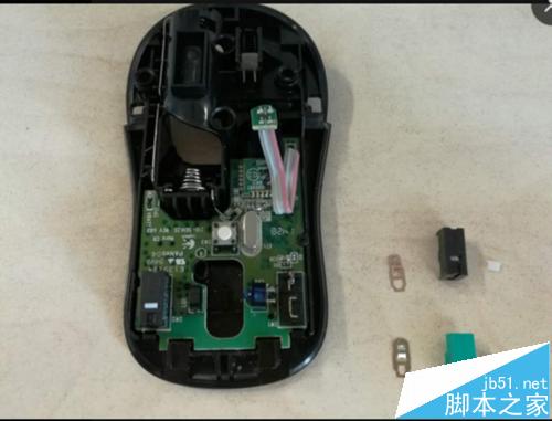 2、打开鼠标。拧开2颗螺丝,从后部往上提取、再往后拉即可打开鼠标。