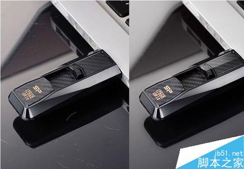 由于随身碟上的logo为金色,所以再用图层遮色片,将LOGO给隐藏起来,不要套用黑白的渐层对应,这时LOGO就回复原色了。