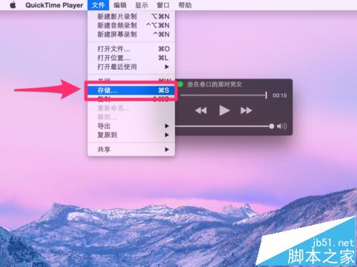 5、剪辑完成就该保存了,找到MacBook顶部“文件”项,然后从下拉菜单中选择“存储”这一栏,点击进入下一步。
