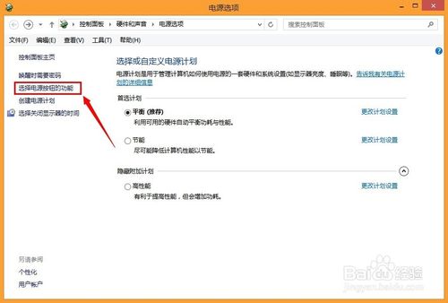 然后点击出来的这个窗口左边的 选择电源按钮的功能!如下图