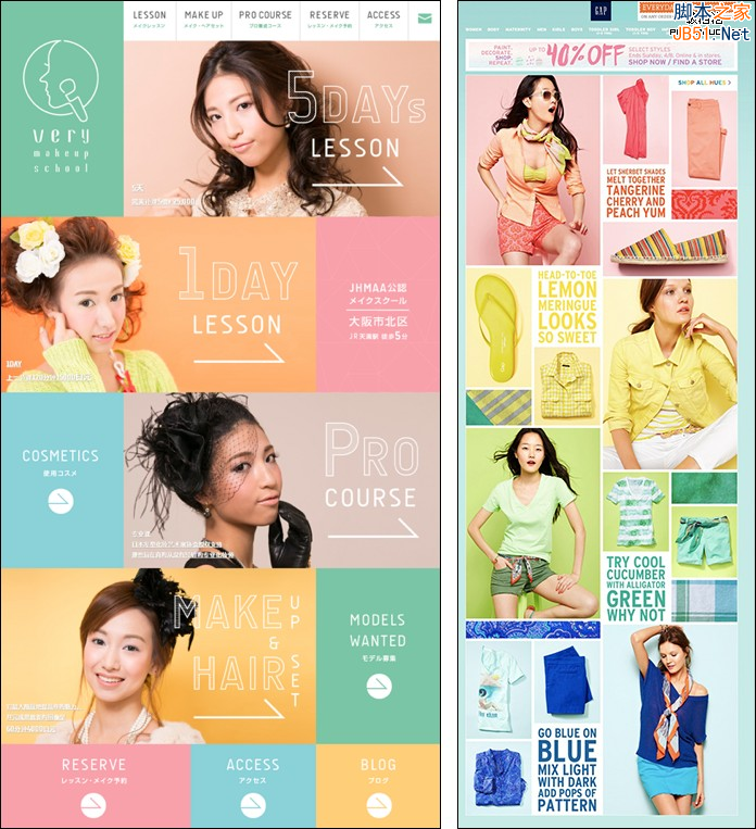 观点:色彩色相对比、色彩面积对比,只要保持一定的比例关系,页面也能整整有序。