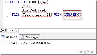 当表创建好之后,就可以查询数据了,值得注意的是,查询内存优化表需要snapshot隔离等级或者hint,这个隔离等级与快照隔离是不同的,如图6所示。