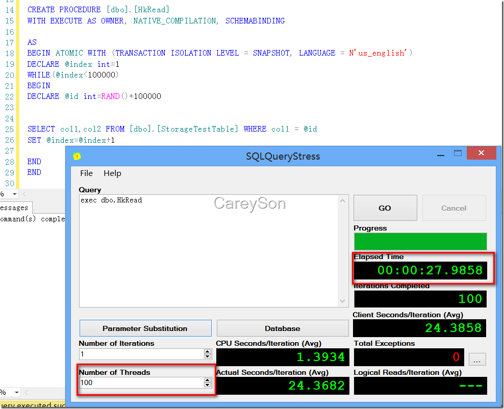 因此不难看出,内存优化表+本地编译存储过程有接近几十倍的性能提升。