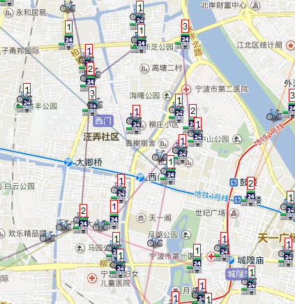 本文介绍了js实现百度地图同时显示多个路书效果,主要是以自行车的还车地点作为实例,具体代码如下: