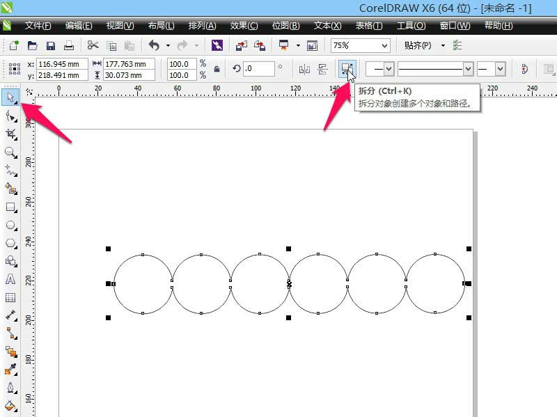 3、选中一个圆