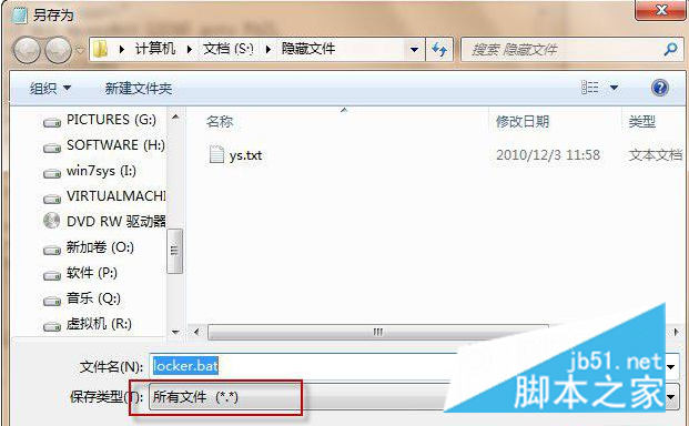 5、然后将文本文件另存为.bat格式,文件名可以定为“locker.bat”,提醒,保存类型设置为“所有文件”才能保存成功;