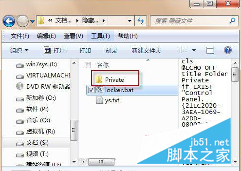 6、然后双击“locker.bat”文件,在“隐藏文件”文件夹中建立一个名为“Private”的文件夹,你可以将任何需要隐藏的文件放置到该文件夹;