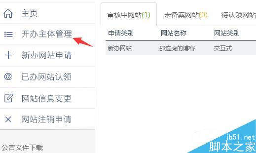 2,登录后会提示填写开办主体管理,如果没有提示登录后点击左边的菜单就行