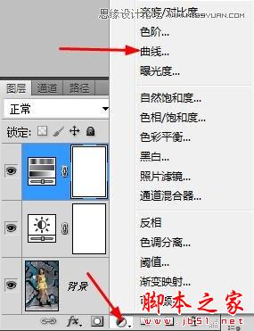 点击"创建新的填充或调整图层"按钮,在弹出菜单中选择"曲线",如下所示
