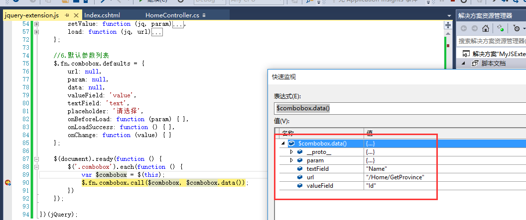 2)参数列表。这里通过$combobox.data()得到的就是所有html里面的data-*属性。将所有的data-*属性作为参数传入combobox的初始化方法中。