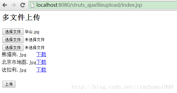 浏览器中输入:http://localhost:8080/struts_ajaxfileupload/index.jsp 即可进行文件上传