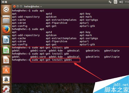 输入命令: sudo apt-get install gdebi,后按enter执行