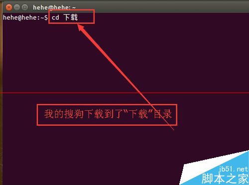 在终端中继续输入: cd 下载的某狗文件所在目录,我这里就输入:cd 下载,因为我下载的某狗在下载目录。