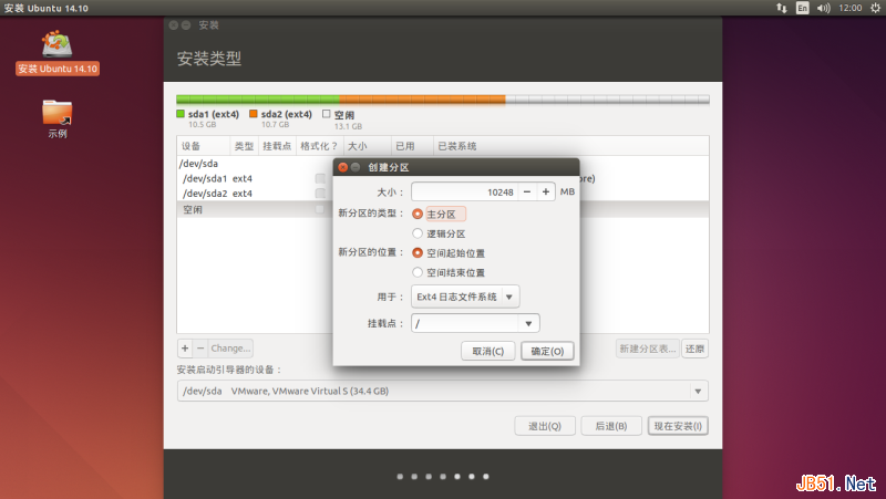 第四步、安装Ubuntu 14.04。进入分区界面后我开始截图,如下: