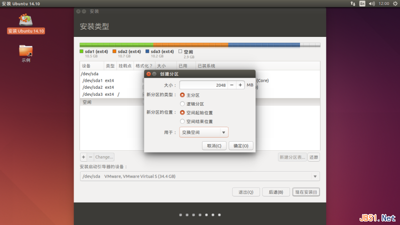 继续安装系统,依然不理会没有交换分区的警告。