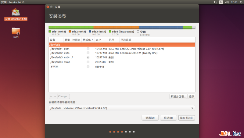 我决定先安装CentOS 7,再安装Fedora 21,最后安装Ubuntu 14.10,全是桌面版。下面是过程: